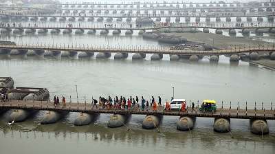 प्रयागराज महाकुम्भ... पीपे के पुल श्रद्धालुओं के लिए सुगम आवागमन का बने मुख्य साधन