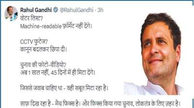 कांग्रेस के वरिष्ठ नेता और लोकसभा में नेता प्रतिपक्ष राहुल गांधी ने शनिवार को चुनाव आयोग की एक हालिया अधिसूचना को लेकर तीखा हमला बोला है. उन्होंने आरोप लगाया कि...