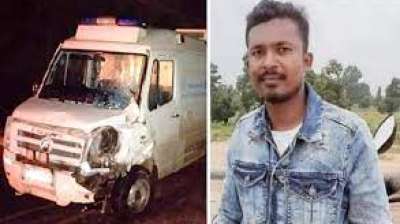 एंबुलेंस की टक्कर से उछलकर उसकी छत पर गिरे युवक को चालक कई किलोमीटर दूर ले गया