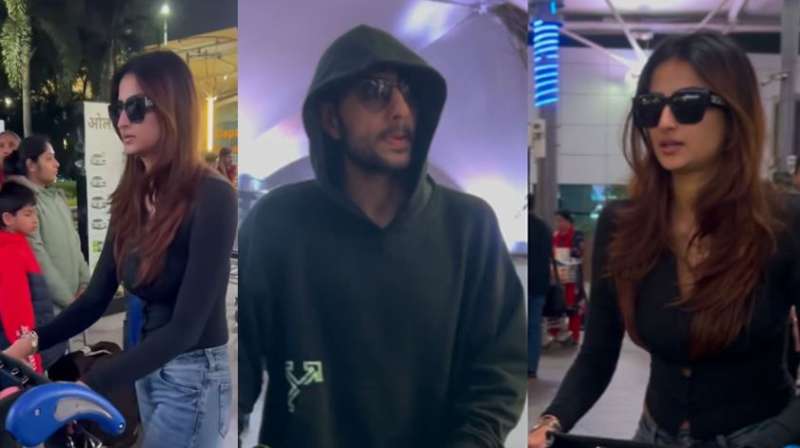 सोशल मीडिया पर पलक तिवारी और इब्राहिम अली खान का वीडियो हर तरफ छाया हुआ है. एयरपोर्ट पर जहां पलक को ब्लैक कलर के टॉप और डेनिम जींस में काले रंग के चश्में लगाए देखा गया. वहीं दूसरी तरफ इब्राहिम अली खान अपना चेहरा छिपाते हुए मीडिया की नजरों से बचते हुए नजर आए. पलक और इब्राहिम को एक ही वक्त पर मुंबई एयरपोर्ट पर देखा गया. हालांकि दोनों अलग-अलग होकर पैपराजी से बचकर निकलने की कोशिश करते हुए नजर आए. लेकिन दोनों की चोरी पकड़ी गई. खबरों की मानें तो दोनों नया साल मनाकर वापस मुंबई लौटे हैं.