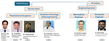 यह ऐतिहासिक नवाचार एक सशक्त बहु-विभागीय और बहु-संस्थागत सहयोग का परिणाम है। एम्स भोपाल से इस परियोजना के प्रधान अन्वेषक डॉ. बी. एल. सोनी (सहायक प्रोफेसर, ट्रॉमा एवं आपातकालीन चिकित्सा विभाग) हैं। सह-अन्वेषकों में डॉ. अंशुल राय (प्रोफेसर, दंत चिकित्सा विभाग), डॉ. सैकत दास (अतिरिक्त प्रोफेसर, रेडिएशन ऑन्कोलॉजी विभाग) तथा डॉ. सुदीप कुमार (सीनियर रेज़िडेंट, दंत चिकित्सा विभाग) शामिल हैं। आईआईटी इंदौर की ओर से डॉ. लोकेश बसवराजप्पा (बायोमेडिकल इंजीनियरिंग विभाग) और डॉ. पुनीत गुप्ता (कंप्यूटर साइंस विभाग) इस परियोजना में सहयोग कर रहे हैं। उल्लेखनीय है कि डॉ. बाबू लाल और डॉ. अंशुल राय के नाम कई पेटेंट दर्ज हैं और वे पूर्व में भी अनेक चिकित्सा उपकरणों का सफल विकास कर चुके हैं।