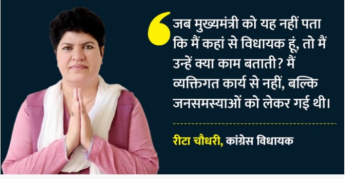 रीटा चौधरी ने अपनी विधानसभा क्षेत्र में नियुक्त प्रभारी मंत्री पर भी गंभीर आरोप लगाए। उन्होंने कहा कि सरकार में आमजन की सुनवाई नहीं हो रही है। प्रभारी मंत्री विकास कार्यों पर ध्यान देने के बजाय हवेलियों पर कब्जा करने जैसे कार्यों में लगे हुए हैं।