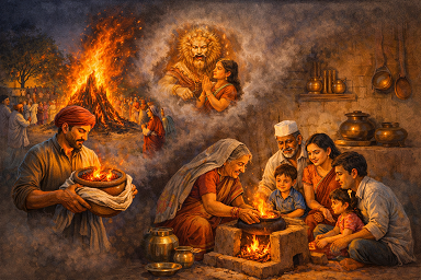 रूप से भी देखें तो यह परम्परा जीवन के गहन सत्य की ओर संकेत करती है। होलिका दहन हमें यह सिखाता है कि अहंकार, द्वेष और वैमनस्य को जलाकर ही समाज में सौहार्द स्थापित किया जा सकता है। जब वही अग्नि घर के चूल्हे में जलती थी, तो यह संदेश देती थी कि परिवार का पोषण केवल अन्न से नहीं, बल्कि सद्भाव और विश्वास से होता है। भोजन बनाना भी एक प्रकार का यज्ञ है, जिसमें अग्नि देवता साक्षी होते हैं।