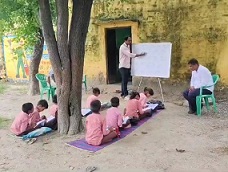 Two examples of schools without proper buildings are sufficient to illustrate the situation. In Harjipura village of Ashta block in Sehore district, Madhya Pradesh, children were forced to study under the open sky, sitting beneath a neem tree on the very first day of the admission drive. Similarly, in Sambhal, Uttar Pradesh, students are studying under a tree because the dilapidated school building was demolished about a year ago. In Sikandarpur Karchali village of Panwasa block, due to the absence of a school building for the past year, children are studying under a tree, and even enrolled students are not regularly attending school.