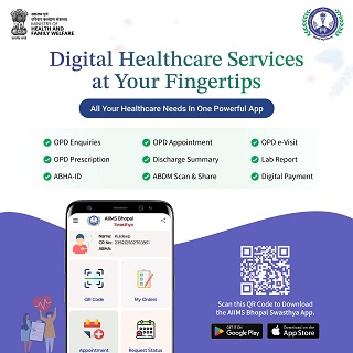 With these new and upgraded facilities, the ‘AIIMS Swasthya’ Mobile App now brings almost all healthcare services onto a single digital platform. It enables doctors to deliver timely, transparent, and efficient medical care. The app is available for download on both Google Play Store and Apple App Store, and can also be downloaded directly by scanning the QR code. AIIMS Bhopal and C-DAC remain committed to advancing digital health initiatives under ABDM to ensure accessible, affordable, and quality healthcare for all.