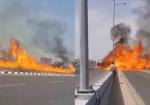 नेशनल हाईवे पर तेल टैंकर पलटा, 200 मीटर तक फैली भीषण आग